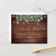 Reserva la fecha! Anuncie a su boda a sus amigos y familia con esta madera rústica y eucaliptos de bajo presupuesto, salven las tarjetas de cita. Estas tarjetas de invitación para bodas de presupuesto tienen una opción de sobres. Personaliza con nombres, fecha de boda, ubicación. Añadir cualquier otra información en la parte posterior. Este único boda de vegetación, salvo las tarjetas, hará que su huésped se asegure de guardar la fecha. DERECHOS RESERVADOS © 2020 Judy Burrows, Black Dog Art - Todos los derechos reservados. Boda de presupuesto de la vegetación de madera rústica salva la fecha