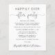 Elige un boda más económico o invitación más pequeña para informar a la familia y amigos de que sus planes de boda han cambiado, y has eludido o reducido el número de invitados en tu boda, y para invitarlos a una boda o a un fiesta de celebración. La parte delantera incluye "Feliz siempre después del Fiesta" en una mezcla de tipografía simple y un guión elegante con intercambios, y puedes personalizar tu mensaje e invitación con más detalle y tus nombres en un guión tipo firma. En el reverso aparece tu foto boda favorita, tus nombres y fecha de boda.