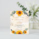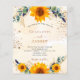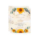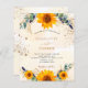 Fondo de color blanco y dorado, decorado con girasoles, vegetación eucaliptos, hojas doradas y polvo falso purpurina de oro. Personalice y agregue sus nombres y detalles del fiesta.
