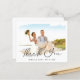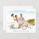 Esta es una tarjeta de agradecimiento para bodas de fotografía moderna y de diseño, con un presupuesto asequible, usando un elegante tipo de letra manuscrita, impresa en una hoja de papel. Cambia fácilmente los colores, el texto y la foto. El lado inverso incluye un mensaje de agradecimiento que puede personalizar o eliminar por completo si prefiere escribir a mano su nota de agradecimiento. Póngase en contacto con el diseñador para cualquier consulta relacionada con este diseño.