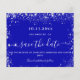 Un moderno y elegante Salven la Fecha para un boda. Un fondo de la marina real decorado con un polvo falso purpurina plateado. Personalice y agregue una fecha y nombres. El texto: Save the Date se escribe con un gran guión de estilo escrito a mano.