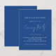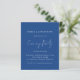 Boda De Guión Presupuestario Fiesta De Noche Mediana Azul. Una alternativa de valor por dinero BUDGET en un tamaño menor de 4,5 x 5,6" de peso semibrillante de 110 libras, que es de espesor similar al de una postal (sin embargo, no es adecuado para usar como postal). POR FAVOR, TENGA EN CUENTA QUE HAY UNA invitación por hoja. Un conjunto de estilo escrito a mano para el Fiesta de la noche y el resto del texto que puedes personalizar fácilmente. El texto y los colores de fondo se pueden cambiar a cualquiera o a su elección mediante la opción personalizar adicional.