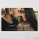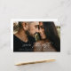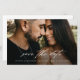 Una foto boda horizontal, romántica y simple ahorra la fecha con un hermoso overlay de caligrafía de escritura en el frente. La parte de atrás tiene un collage de 2 fotos con un sitio web boda. Haga clic en el botón de edición para personalizar de este diseño.