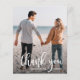 Un pequeño papel de 4,5" x 5,6" de bajo costo presenta su foto, las palabras Gracias y sus nombres en letras de moda con su nota de agradecimiento en la parte posterior. Papel de 110 libras y su elección de 3 tamaños. **LOS ENVELOPES BLANCOS SON OPCIONALES EN LA PÁGINA PEDIDO. Asegúrese de comprobar dos veces su pedido antes de añadirlo a su carrito, ya que lo que ve en la pantalla es lo que se va a imprimir. El servicio de diseño en vivo puede ayudarle con su diseño de diseño si es necesario.