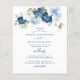 Añada fácilmente los detalles de su boda a esta elegante y elegante plantilla floral azul haciendo clic en el botón "Personalizar". Presenta una floral azul y azul oscuro con vegetación y una tipografía moderna de fondo blanco. Cambie completamente el fondo de esta invitación haciendo clic en el botón "Personalizar"