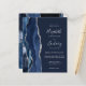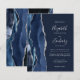 El borde izquierdo de esta elegante y moderna invitación a la boda incluye una barra acuática azul marino bordeada por un falso purpurina plateado. El texto del personalizable combina escritura a mano, copperplate y cursiva en gris plateado claro sobre un fondo azul marino. El reverso presenta un diseño de ágata color azul marino y plata.