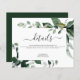 Boda de primavera de color de agua verde presupuesto Elegante y moderno Boda de invitación Detalles Insertar carta sobre fondo blanco - incluye hermosa y elegante tipografía de escritura con hojas botánicas modernas y vegetación para la celebración especial del Día de la Boda.