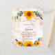 Un fondo de mármol dorado decorado con girasoles, follaje de eucalipto y hojas doradas. Personaliza y añade tus nombres y detalles de la fiesta.