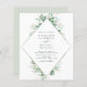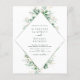 Eucalyptus Greenery Invitaciones a la Boda de Primavera de las Acuarelas Geométricas Botánicas y Verdes y Oro sobre el fondo blanco - incluye una tipografía de escritura hermosa y elegante con hojas botánicas modernas y vegetación para la celebración especial del Día de la Boda.