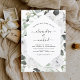 Rosas florales blancos y eucalipto Invitaciones a la primavera o a la boda de verano Boda de color de agua de la vegetación botánica - incluye una tipografía de escritura hermosa y elegante con flores botánicas tropicales modernas y vegetación para la celebración especial del Día de la Boda.