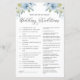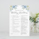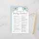 ¿Por qué hacemos eso? Añade esta tarjeta de juego botánica a tu evento. Cuenta con ilustraciones acuarelas de rosas blanco y azul y peonías con acento verde. Personalice agregando textos. Esta tarjeta de juego de tradiciones bodas florales es perfecta para duchas nupales.