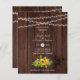 Fije el tono para la celebración de su país con estos objetos rústicos de papelería boda con un cálido fondo de madera, brillantes luces de cuerda y encantadoras jarras de albañil. Perfecto para bodas de granero, celebraciones al aire libre o acogedoras ceremonias nocturnas, este diseño rústico crea un ambiente acogedor y romántico. Personalizar con tus nombres, detalles del boda e información del evento para diseñar la papelería perfecta que refleja tu estilo rústico.