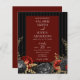 Invitaciones a la Boda Floral Gótica Roja y Negra. Leaves florales de oro falso. Resalta el tipo de letra del guión con un tipo de letra de nombre del serif fácil de leer. Fácil de ajustar para sus propias necesidades bodas. Todo en una sola invitación