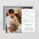 Elegante, salvo que el anuncio de fecha es perfecto para poner en marcha sus planes de boda. Presenta una plantilla fotográfica y una tipografía grande de "guardar la fecha" en azul polvoriento sobre un fondo blanco. Personalizar con sus propios detalles.