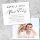 Un mínimo y moda amigable con el presupuesto y boda blanco y negro después de la invitación de la recepción fiesta para una celebración post-electoral o boda con "Feliz eterno después del Fiesta" escrito en una mezcla de tipografía simple y un elegante guión moderno y tu foto en la parte trasera. También está disponible una versión tradicional del stock de tarjetas (envíenos un mensaje para el enlace).
