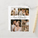 Boda 5 Collage de fotos de Budget Elegant Hand Lettered 5 Gracias folleto personalizado asequible de bajo presupuesto. Plantilla de agradecimiento boda moderno que incluye cinco (5) fotos en la parte delantera y una (1) foto en la parte posterior. En la parte delantera del papel, el guión tipográfico "Amor y agradecimiento" en un tipo de letra con letras a mano rápida en fondo negro sobre blanco. ***POR FAVOR, TEN EN CUENTA QUE! *** PAPEL PRESUPUESTARIO/VOLADOR ES PAPEL DELGADO. *** ACTUALIZAR EL PAPEL PARA UN PAPEL MÁS AGRADABLE. *** Postal: https://www.zazzle.com/wedding_5_photo_collage_love_and_thanks_thank_you_postcard-256255654764280554 Material de cartón tradicional con sobres: https://www.zazzle.com/love_and_thanks_script_photo_collage_wedding_thank_you_card-256627230375327202 Fácil de personalizar con tu nombre, fotos y mensaje de agradecimiento. Si prefiere escribir a mano la nota, simplemente elimine el texto de ejemplo para hacer más espacio. Por favor, contáctame si necesitas ayuda con este diseño.
