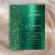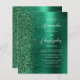 El borde izquierdo de esta elegante y moderna invitación a la boda incluye un borde falso purpurina verde esmeralda. El texto del personalizable combina la escritura a mano blanca y las fuentes sans serif en un fondo metalizado verde falso. En el reverso se encuentra un purpurina verde y un diseño metalizado cepillado.