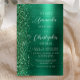 El borde izquierdo de esta elegante y moderna invitación a la boda incluye un borde falso purpurina verde esmeralda. El texto del personalizable combina la escritura a mano blanca y las fuentes sans serif en un fondo metalizado verde falso. En el reverso se encuentra un purpurina verde y un diseño metalizado cepillado.