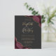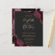 En dos esquinas de este elegante diseño aparece un diseño de agate color rojo burdeos adornado con un falso purpurina dorado. Personalízalo con los nombres de la pareja en un guión de escritura a mano de color dorado sobre una gran ampersand gris. Agregue los detalles del boda en copperplate de color dorado y fuentes cursivas en un fondo negro de pizarra. En el reverso se puede apreciar un diseño burdeos y agate dorado a juego. NOTA: Los sobres no se incluyen automáticamente con estas invitaciones presupuestarias, así que por favor recuerde elegir la opción "sobres blancos".