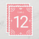 Crea una atmósfera festiva con este número de mesa de papel picado boda. Este magnífico número de mesa tiene un diseño clásico a papel picado sobre un fondo rosado subió. A tus invitados les encantará llegar a su mesa con este divertido toque de color. Una encantadora adición a un boda mexicano o suroeste. Mezcla y combina con los demás colores de mi Modern Papel Picado Mexicano Boda Suite.