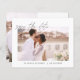 Boda Presupuestaria Guardar las tarjetas de fecha que tienen una foto en la parte delantera y trasera. Las tarjetas Save the Date contienen una moderna tipografía de escritura cursiva con letras a mano que son elegantes, simples y modernas para usar después de la minimalista celebración del día de la boda.