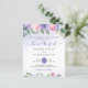 Invitación a una boda floral de color agua rosa y peri con un fondo de textura peri muy ligero. nombres, fechas e información de personalizares.