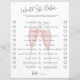 Este diseño presenta una hoja de papel de juego para una ducha de novias boda, una plantilla más bien para ella, con brunch y temática burbujeante, con una mimosa de champán rosa, una caligrafía clásica minimalista sencilla, un papel de personalizado en la ducha de novia, productos de fiesta para duchas de novias personalizados, un relleno sencillo de papel, una tipografía caligráfica elegante, un juego imprimible con ducha de personalizado de novia