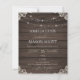 Anuncie su día especial con esta encantadora invitación rústica a la boda. Con un bonito fondo de madera marrón oscura, delicados acentos de encaje crema y cálidas luces de cuerda, este diseño le da un tono romántico y acogedor a su celebración. Personalízalo con tus nombres y detalles de boda para un toque verdaderamente único. La combinación de madera rústica y elegante encaje crea una perfecta mezcla de texturas, añadiendo un toque de encanto vintage a su gran día. Esta invitación impresionará a sus invitados y preparará el escenario para un boda memorable. Esta nostálgica invitación a la moda es ideal para los que tienen un presupuesto que no quieren sacrificar el estilo.