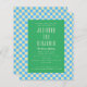 Patrón de tablero de ajedrez estético retro de presupuesto Invitación de casamiento azul y verde