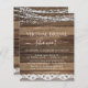 Boda virtual con presupuesto - Luces de cuerda rústicas de granja Invitaciones de encaje sobre fondo de madera - incluye una tipografía de guión hermosa y elegante con un toque moderno de granja rural para la celebración especial de la futura novia.