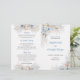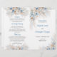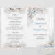 Programa de ceremonia de boda elegante Boho azul floral y rosas marfil hierba de pampas doblada, plan de día de boda con vegetación, programa de ceremonia de boda, agenda de boda verde y dorada,