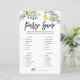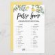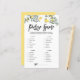 ¿Qué hay en tu bolso? Añade esta divertida y divertida tarjeta botánica de juego para la ducha de bebé a tu evento. Cuenta con ilustraciones acuáticos de limones y vegetación. Puede personalizar la tarjeta agregando textos de vuelta. Esta tarjeta de limón es perfecta para duchas nupciales de primavera y verano.