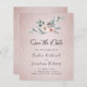 Boho Presupuestado Dusty Roses Rosa Rosa de Rubor Purpurina Ombre Boda Salvar la Fecha... Si te encanta una moda bohemia y te estás casando, aquí hay una hermosa y asequible tarjeta Save the Date a considerar. Nuestra tarjeta Save the Date budget (ahorre la fecha) presenta un estilo boho rosa polvoriento rosas y un armazón floral verde en un elegante fondo de color negro rosa purpurina oro oscuro. La parte posterior de la tarjeta contiene un mensaje personal y la información del sitio web de su boda sobre el mismo fondo sombrío purpurina. Todo el texto de ejemplo se puede revisar fácilmente con su propia información sobre la plantilla de personalización.