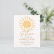 ¡Nuestro pequeño rayo de sol está en camino! Este boho y diseño de presupuesto muestra un ilustracion acuarela que llena la parte superior de la tarjeta con los detalles del evento abajo en la tipografía de moda. El nombre de la futura madre, "sunshine", la fecha, y la información del registro están todos escritos en un color naranja rojizo con el resto del texto en un tono marrón cálido. La parte posterior de la tarjeta presenta el mismo color naranja de terracota con un patrón abstracto de pinceladas orgánicas. Este diseño bohemio con un alegre color amarillo y naranja es perfecto tanto para las duchas de niños como para las chicas. Invitaciones a la ducha de bebé con temática solar y neutra para eventos de primavera o verano. Entre los temas que coinciden se incluyen "aquí viene el sol", "tú eres mi sol", "el rayo de sol" y duchas de bebé arco iris. Esta plantilla de invitación se puede editar en línea: haga clic en "Personalizar esta plantilla" y escriba su texto en los cuadros proporcionados. Para cambios más avanzados, desplácese hasta "hacer clic en el personalizar más adelante" y acceda a la herramienta Diseño de Zazzle para elegir colores personalizados, cambiar fuentes, editar ubicación y más! Como parte de la selección presupuestaria de Zazzle, esta hoja no es un tamaño de invitación estándar ni una calidad de papel. Si quieres este diseño en una tarjeta de invitación, puedes encontrarlo en nuestra tienda o usar la Máquina Zazzle Make para transferirlo al producto de tu elección. Tenga en cuenta que las tarjetas se imprimen cuando las vea en su pantalla al hacer el pedido, por lo que asegúrese de comprobar dos veces si hay errores tipográficos. Otras opciones de invitación están disponibles en la colección de esta página debajo de la imagen del producto. Navega por mi tienda para ver más invitaciones a la ducha de bebé.