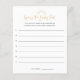 Guión de Boho "Adivina la comida del bebé" gráfico en amarillo rústico con detalles del sol de líneas de arte, hoja de juego de la ducha de bebé con respaldo de patrón amarillo a juego.