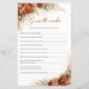 Boho terracotta burgundy pampas Adivinen El juego de ducha nupcial nupcial, Este moderno diseño popular es perfecto para eventos de estilo boho o tropical. Se presenta diseño acuarela pampas pintadas a mano hierba juntando hojas de palma secas mezcladas con flores de terracota y rosas naranjas quemados mezclando flores de cobre rosas del desierto y flores borgoñas mixtas rosas de flores de tierra oxidadas mezcladas y vegetación tocada de eucalipto y fuente combinada moderna de caligrafía. Si planeas una celebración de Fiestas tropicales o de playa, este diseño es para ti. Sensación de boho y visión notable. Las flores naranjas quemadas mezclan rosas burdeos con flores de terracota y el arreglo de eucalipto verde y el estilo combinado de letra de escritura a la moda hacen que estos elementos de diseño sean tan impresionantes. Utilizado con éxito para Boda, ducha de novia, compromiso, Baby Shower, aniversario o cualquier evento. En esta colección podrá encontrar todos los elementos para su fiesta, como invitaciones a bodas, invitaciones a duchas nupciales, invitaciones a duchas de bebé, cartas de asientos, menús, programas, etiquetas, carteles, posters y mucho más. ¡Disfrútalo! Contáctame para obtener elementos coincidentes o para personalización, Rosas de Rubor ©