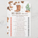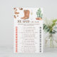 Este diseño presenta colores neutros modernos en una aplicación acuarela. Diseño en estampado de vacas, vaso de champán, cactus del desierto, botas de vaquero.