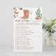Este diseño presenta colores neutros modernos en una aplicación acuarela. Diseño en estampado de vacas, vaso de champán, cactus del desierto, botas de vaquero.