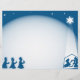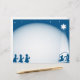 Sencilla silueta azul y blanca de la escena de la natividad de Navidad. Fácilmente personalizable y agregar su propio saludo de Navidad o versículo de la escritura en el espacio. Imagen disponible en varios regalos y productos.