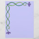 Esta estación cuenta con un diseño de borde superior e izquierdo de viñas entrelazadas con flores moradas. Se puede cambiar el color de fondo.