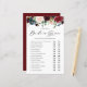 Lámina Borgoña Floral Bride o Groom Bridal Shower Game