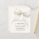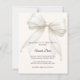 A soft ivory background, decorated with a large white bow with pearls. Elegant and gender neutral. Personalize and add a name and party details.