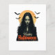 Este oscuro y misterioso diseño de bruja vampiro captura la espeluznante esencia de Halloween. Presentando a una mujer gótica con ojos naranjas penetrantes