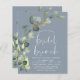 El presupuesto Eucalyptus Greenery Dusty Blue Succulent Botanical Watercolor Primavera Boda Ducha Bridal - Bridal Brunch Invitaciones sobre fondo blanco - incluye una bella y elegante tipografía de escritura con hojas botánicas modernas y vegetación para la celebración especial de la Novia a Ser.