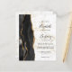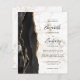 The left-hand edge of this elegant modern wedding invitation features a black watercolor agate border trimmed with faux gold glitter. The customizable text combines handwriting, copperplate and italic fonts in black on a gold and white marble texture background. Add additional details on the back, along with a QR code to help your guests visit your wedding website.
