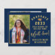 Tarjeta de Invitación de Graduación de Fotografía de la Marina Azul Gold de Presupuesto Negrita 4. Felicitaciones al graduado por su merecido éxito y los celebra con esta hermosa y económica tarjeta. Tenga en cuenta que NO SE incluyen ENVELOPES. Las dimensiones de esta tarjeta son de 4,5" x 5,6" y encajan bien en un sobre A6 de 4,75" x 6,5" si lo tiene. O puede seleccionar una opción de sobre. Todos los textos están preorganizados para que puedas personalizarlos fácil y rápidamente con tus propios detalles.