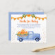 This adorable, boy, 5.6" x 4.5" budget books for baby card featuring a watercolor blue pickup truck loaded with orange pumpkins with glitter details would be perfect for including with your shower invitations! It's fabulous for a fall or harvest time baby shower. It has a coordinating soft blue back with tiny white polka dots. So cute for asking guests to bring their favorite books for the sweet little baby boy you are welcoming.
