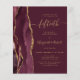 The left-hand edge of this elegant modern 50th anniversary party invitation features a burgundy red watercolor agate border trimmed with faux gold glitter. The customizable text combines gold-colored handwriting, copperplate and italic fonts on a burgundy background. The reverse side features a matching burgundy and gold agate design.