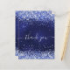 Un color de fondo azul marino. Decorada con polvo falso purpurina de plata. En el frente del gran guión con letras de mano blanca y el texto: Gracias. Gracias está escrito con una escritura de estilo con letras a mano moderna. Atrás: Personaliza y agrega tu nota de agradecimiento y nombre. Para mantener los cambios después de su nombre, elimine sólo el nombre del ejemplo, deje los espacios o la emoji delante y después del nombre.