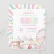 Esta es una invitación de cumpleaños con temática de carnaval de color pastel para cualquier fiesta de cumpleaños de un niño de edad. El diseño está decorado con suaves colores pastel en tonos rosa, verde, amarillo y azul para que sea más femenina y femenina. Los elementos principales de la invitación son un carrusel, una carpa de circo y una rueda de la fortuna, todo ello ilustrado en un estilo caprichoso y lúdico